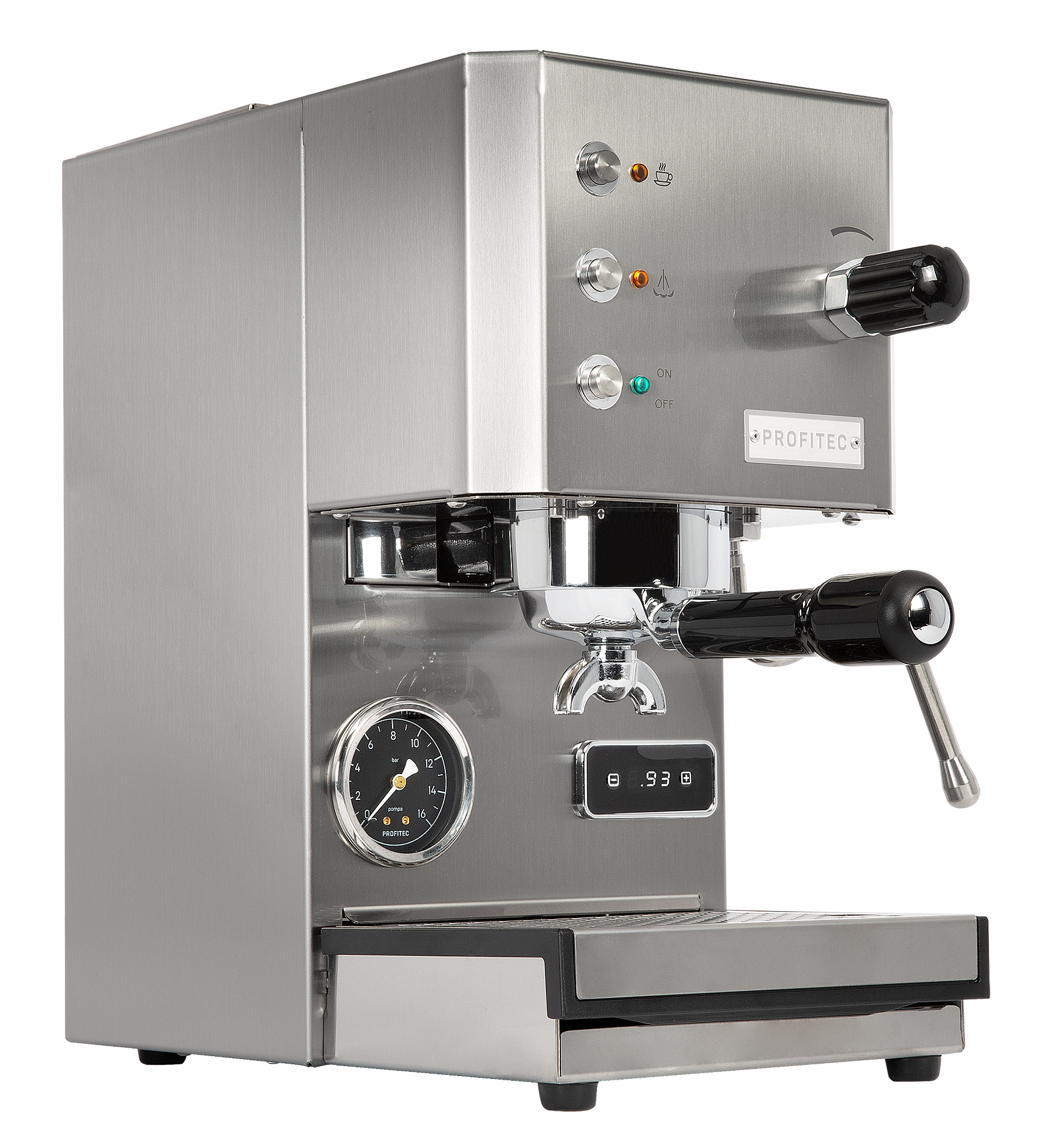 Die GO ist eine kompakte Einkreis-Siebträgermaschine mit Ringbrühgruppe.